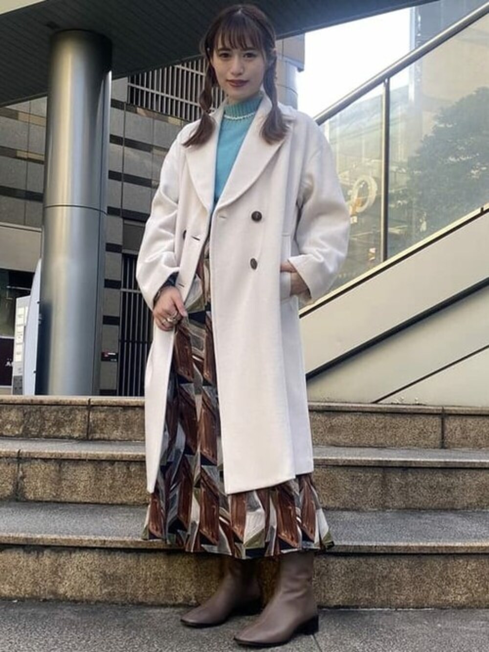 Ray BEAMS(BEAMS WOMEN)のチェスターコート「Ray BEAMS / モッサ 4ボタン ダブル チェスターコート」を使ったコーディネート