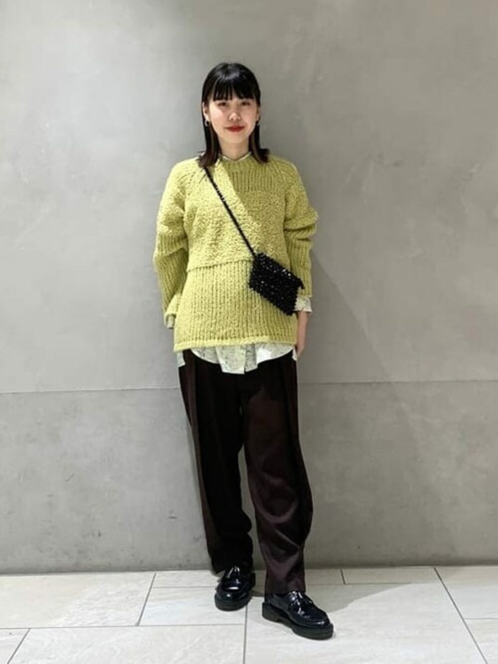 たまにはパンツスタイルです。細身のパンツは腰回りが気になるので苦手ですが、今回着用した商品はゆったり楽チンに着用でき、私の腰回りも安心です。グリーンとブラウン好きな色合わせです。