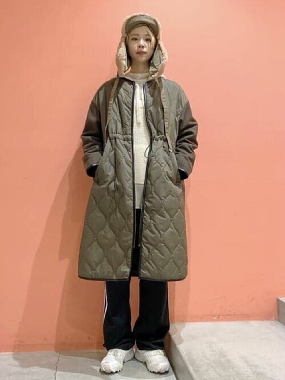 <Ray BEAMS>の裾キリカエキルティングコートに<BEAMS BOY>のメキシカンパーカーとフライトキャップを合わせてミリタリーテイストにスタイリングしてみました!