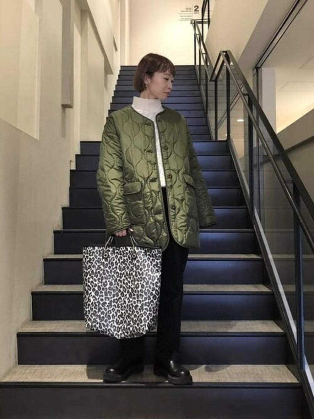 再入荷したキルティングノーカラーブルゾンとニット、組み合わせてみました。相性抜群です!ブルゾンは軽くて身幅もあるので、中にしっかり着込めます。ニットは薄手なので、インするスタイルも楽しめ重宝しそうです^_^