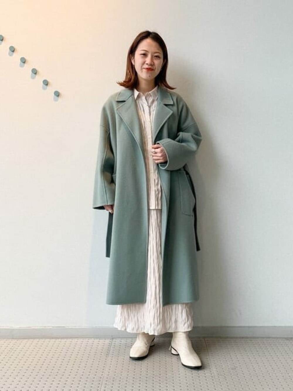 今季注目のミントカラーをポイントにスタイリングしました! インナーはワントーンで組み合わせて引き立ててます^^