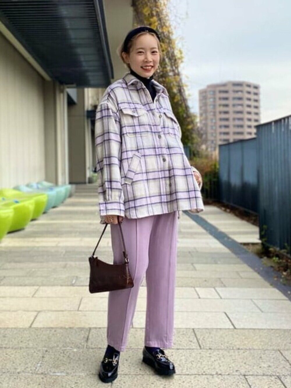 珍しくペールトーンでまとめた日。可愛くなり過ぎないように小物でアクセントをつけました〜^^