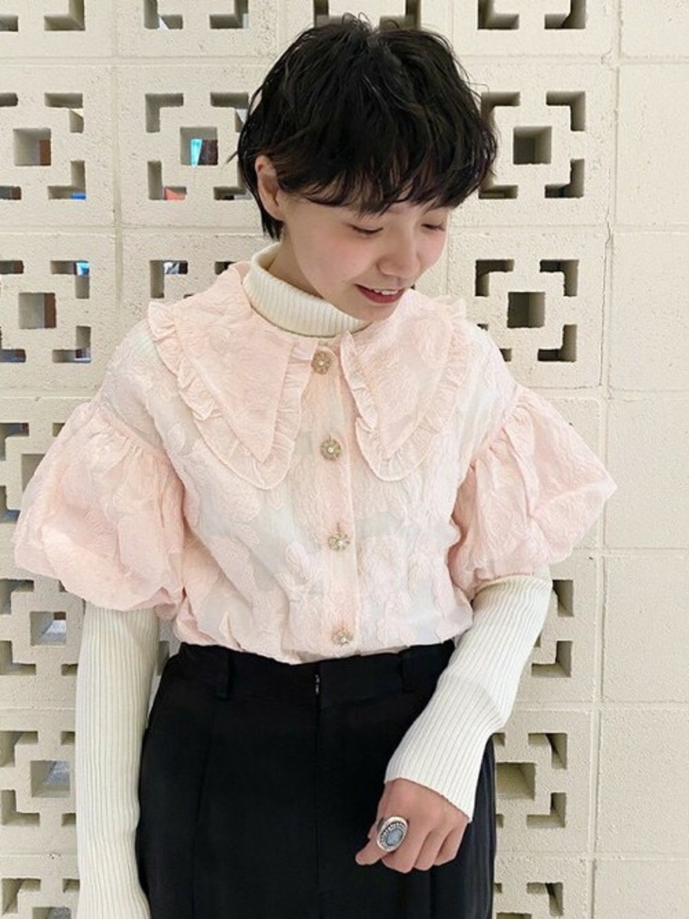 〈sister jane〉をメインに。パフスリーブもおっきなフリルカラーもほど良い花柄の透け感もたまりません。。。ハイネックニットなどと合わせていただくと今からすぐに着ていただけます!