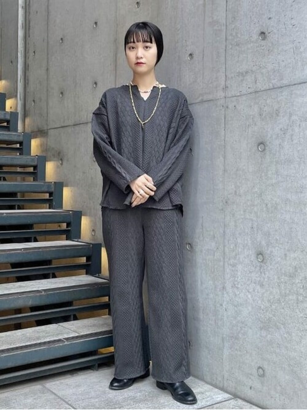 【SALE開催中!】<Ray BEAMS>のSALE対象品でスタイリングしました。カット ケーブルのセットアップを、シンプルに着用。チャコールグレーの色味が絶妙でかわいいです。