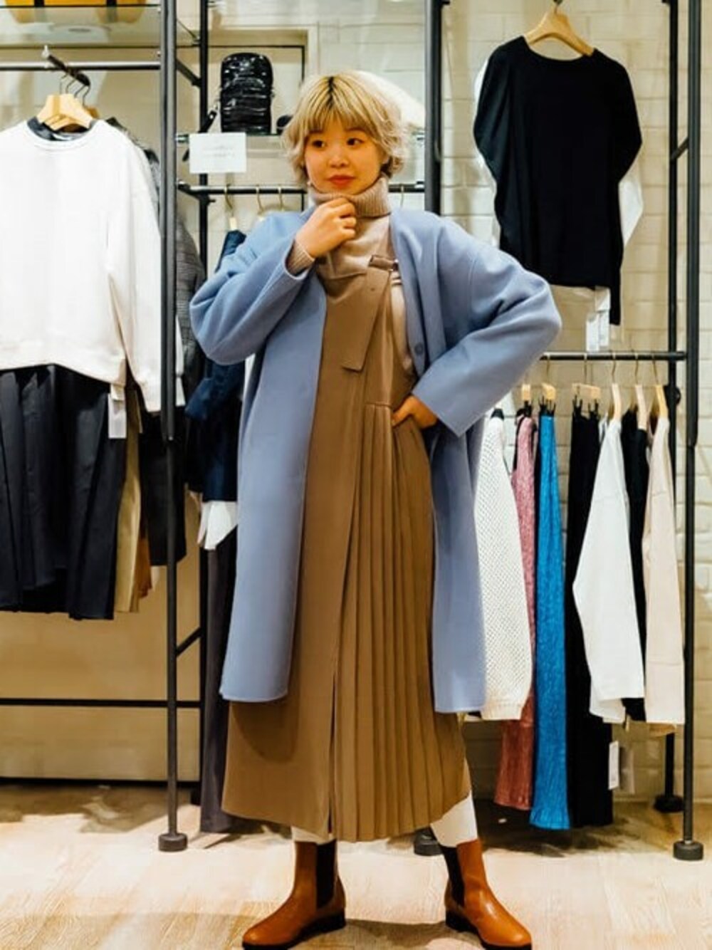 Ray BEAMS(BEAMS WOMEN)のノーカラーコート「Ray BEAMS / リバー ノーカラー Vネック コート」を使ったコーディネート