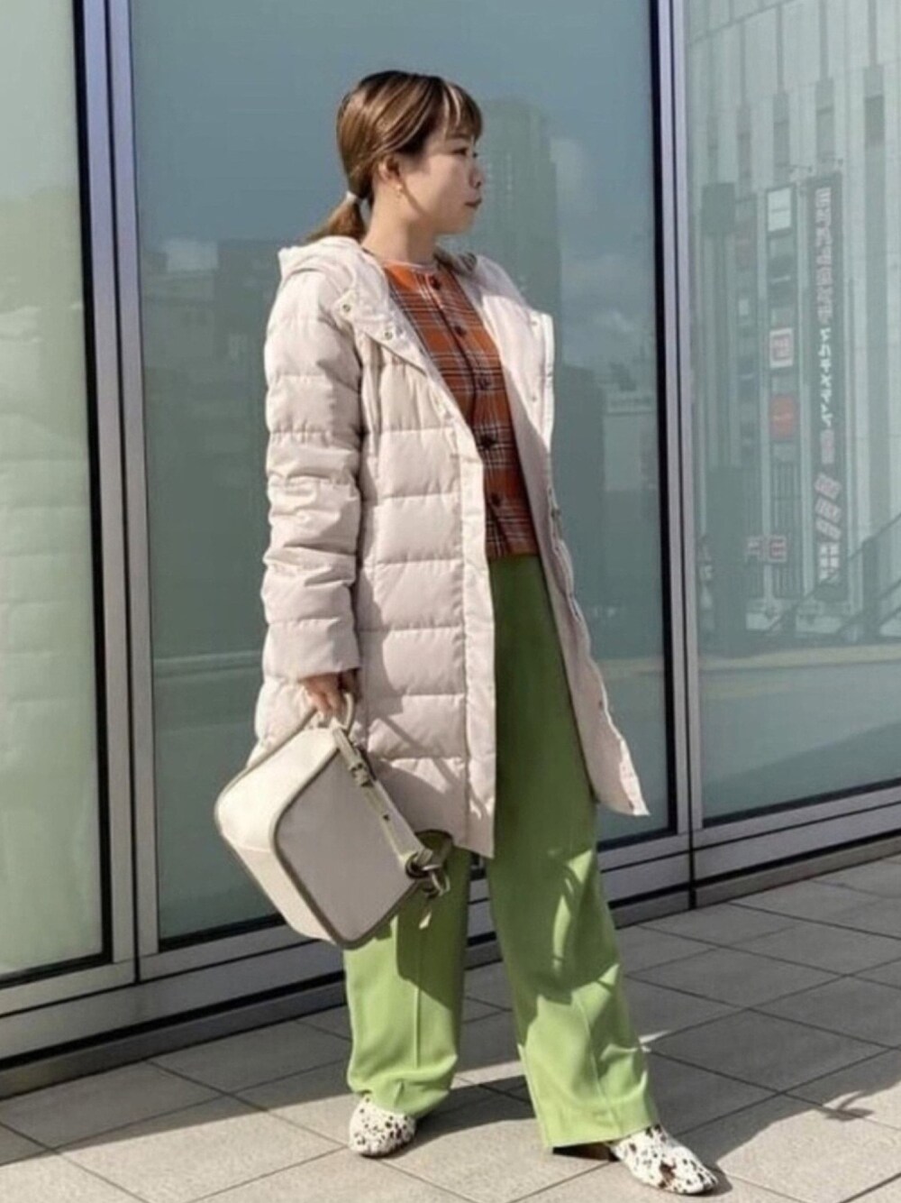 セール対象のダウンコートは軽さが人気の商品です!白はトレンド感もありオススメです!明る色合わせで防寒しつつ春ムードも取り入れました!