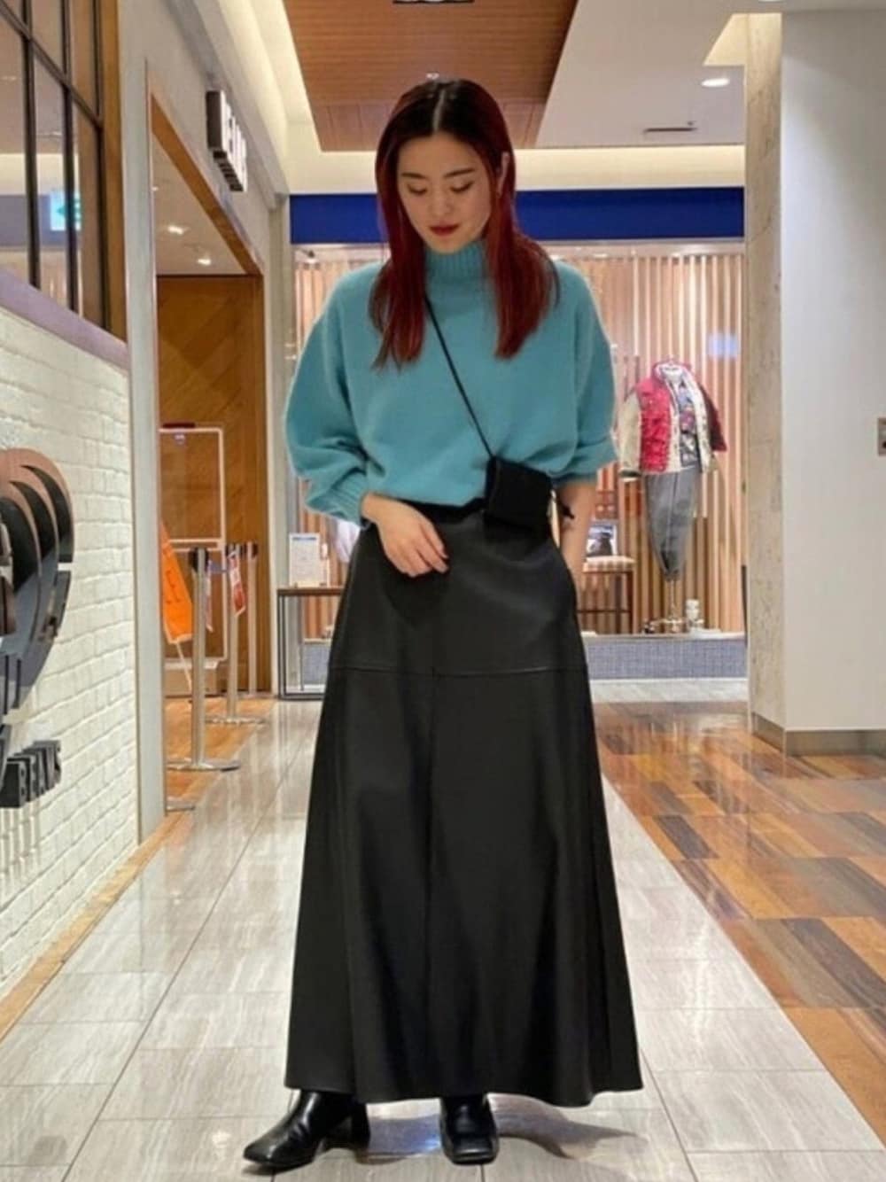 とにかく発色が綺麗なニットと、私のお気に入りのフェイクレザースカートもセール価格になっております◎