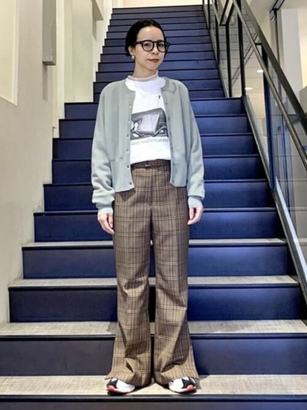 フレッドペリーのカーディガンは、ウエストのリブがしっかり効いていてバランスがキレイです。フレアパンツとのバランスが気に入ってます。