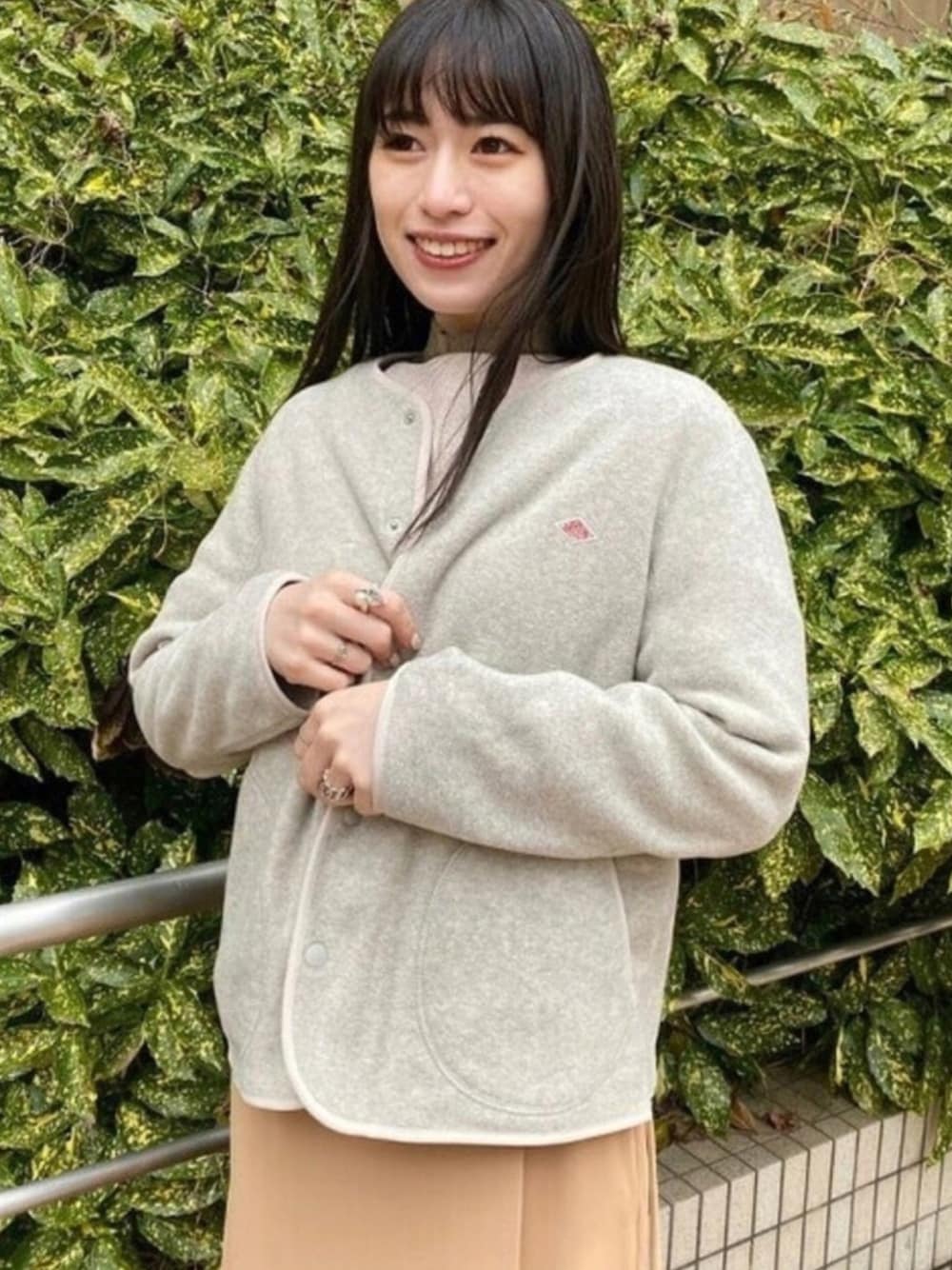 Ray BEAMS(BEAMS WOMEN)のノーカラージャケット「DANTON / ノーカラー フリース ジャケット」を使ったコーディネート