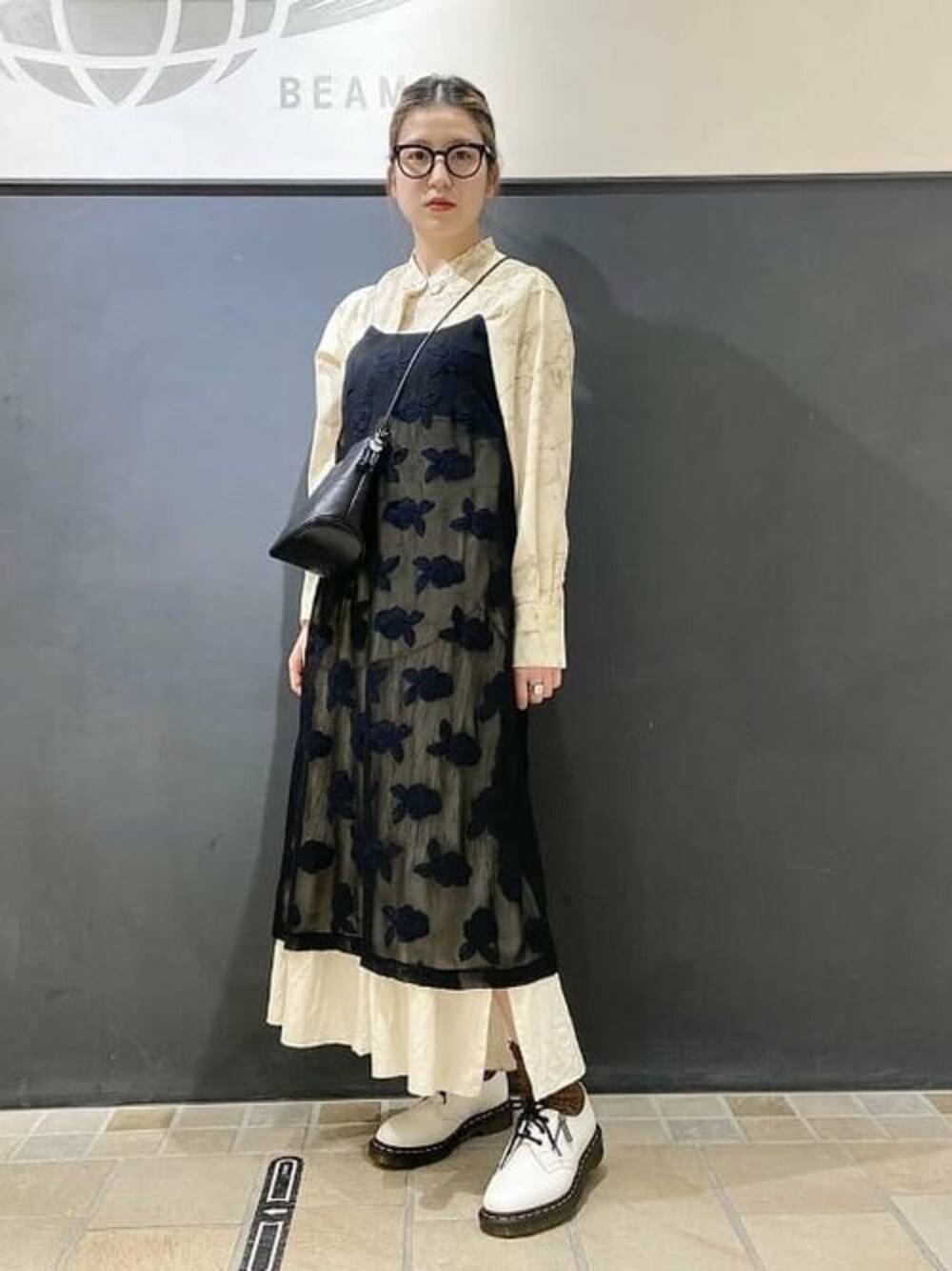 ほぼモノトーンですが、実は柄×柄の合わせしてます!〈MIYAO〉のワンピース、rose柄が透けていて可愛すぎます。。。なんともMIYAOらしい一着です。