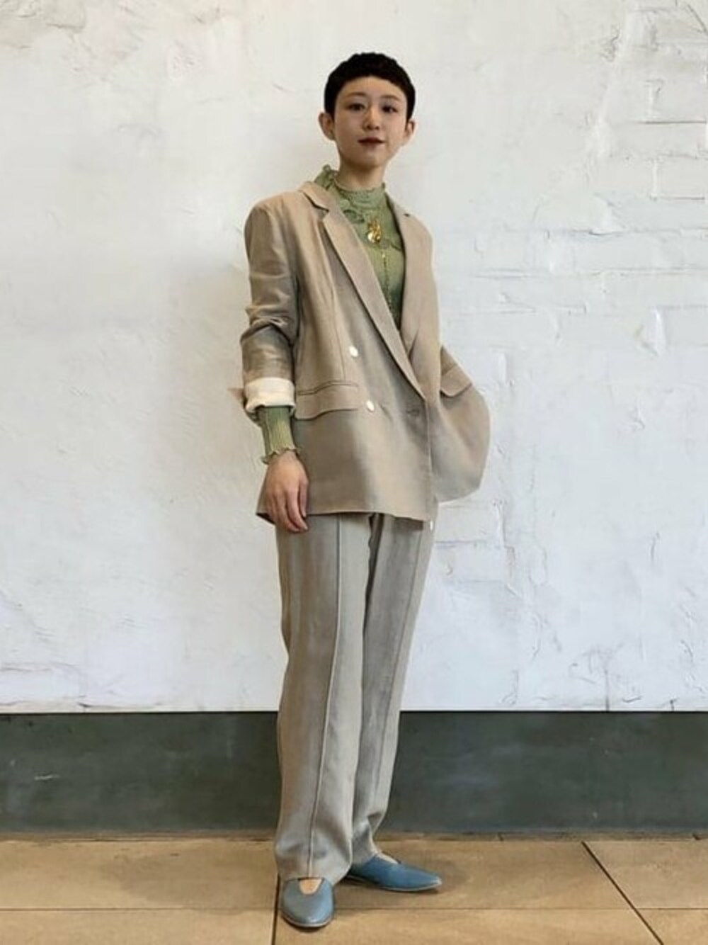 春のセットアップは、程よい抜け感が出る色合わせがポイントです。