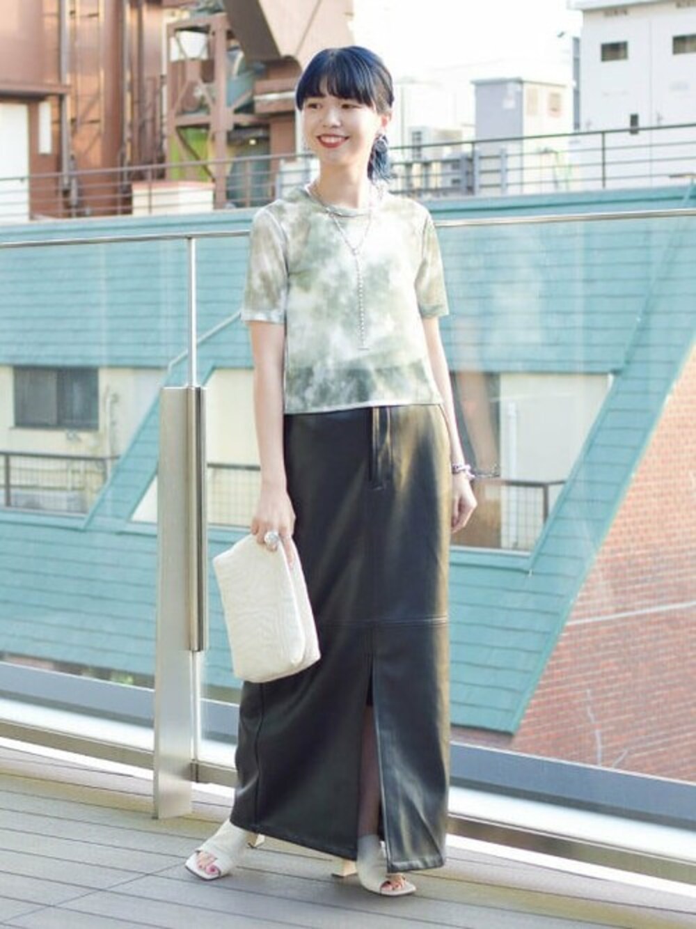 Ray BEAMS(BEAMS WOMEN)のスカート「Ray BEAMS / フェイクレザー Aライン スカート」を使ったコーディネート