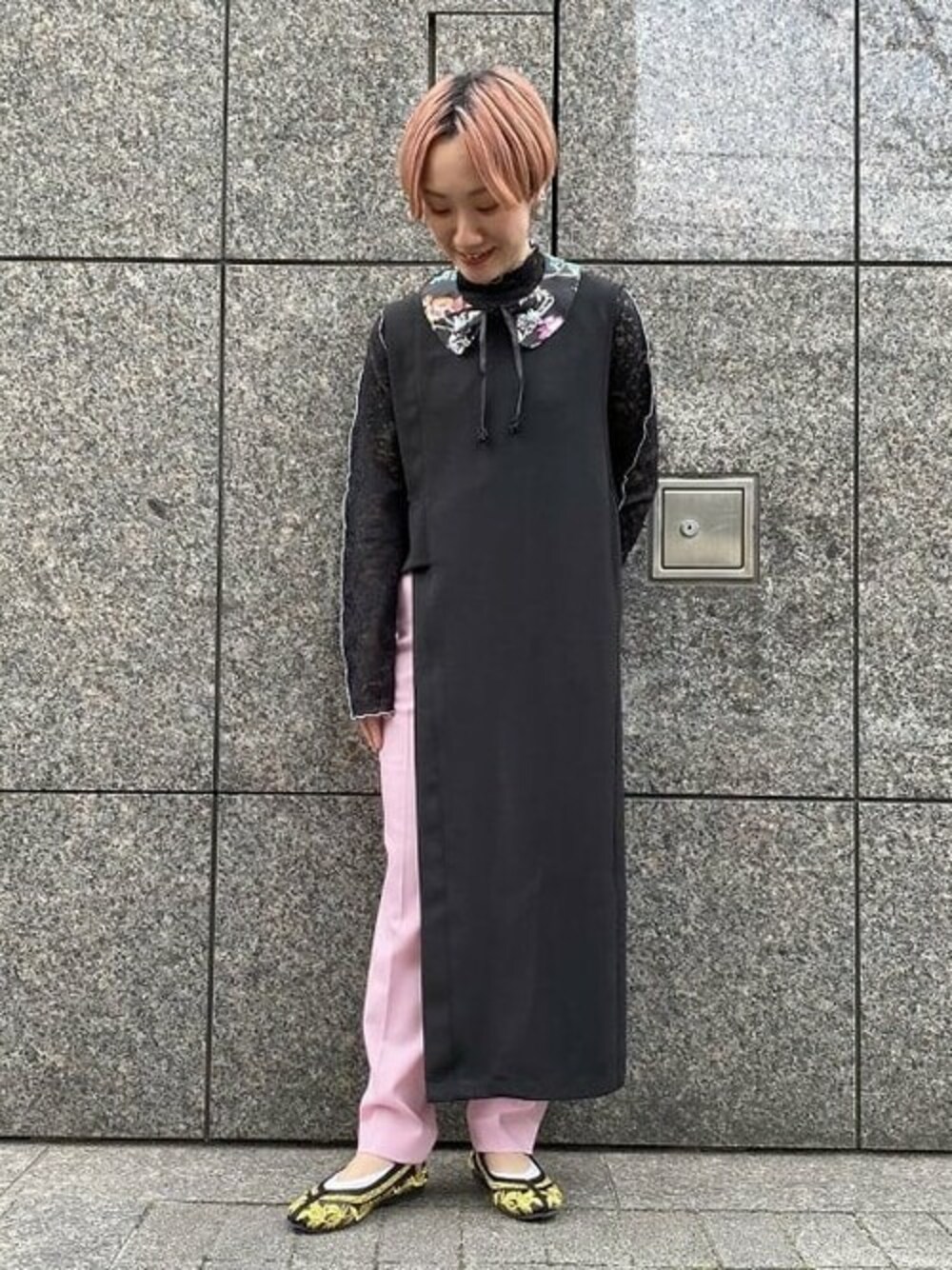 大胆にサイドが開いたワンピースは、レイヤード好きな方へ是非オススメしたいワンピースです!私は低身長なので、コンパクトなインナー、ボトムスを選び小物でポイントをプラスしました♡