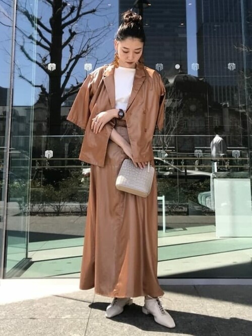 髪はオールバックに、 セットアップで 綺麗めにきめてみました。 中にはTシャツを合わせることで、 抜け感をプラス。 本日は暖かい陽気で、 春服を着ると気分も高まりました!