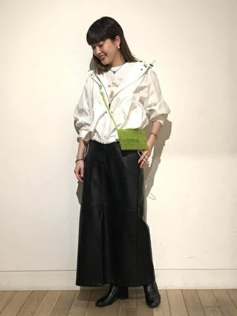 マウンテンパーカーとフェイクレザースカートで、春ならではのスタイリングです♪ 軽めのアウターが重宝する季節ですね◎