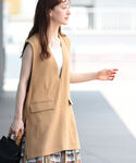 可愛いベストが入荷しましたっ♡着回し力抜群でどんなアイテムともマッチします。今日は同系色のパンツと合わせて統一感を出してみました。