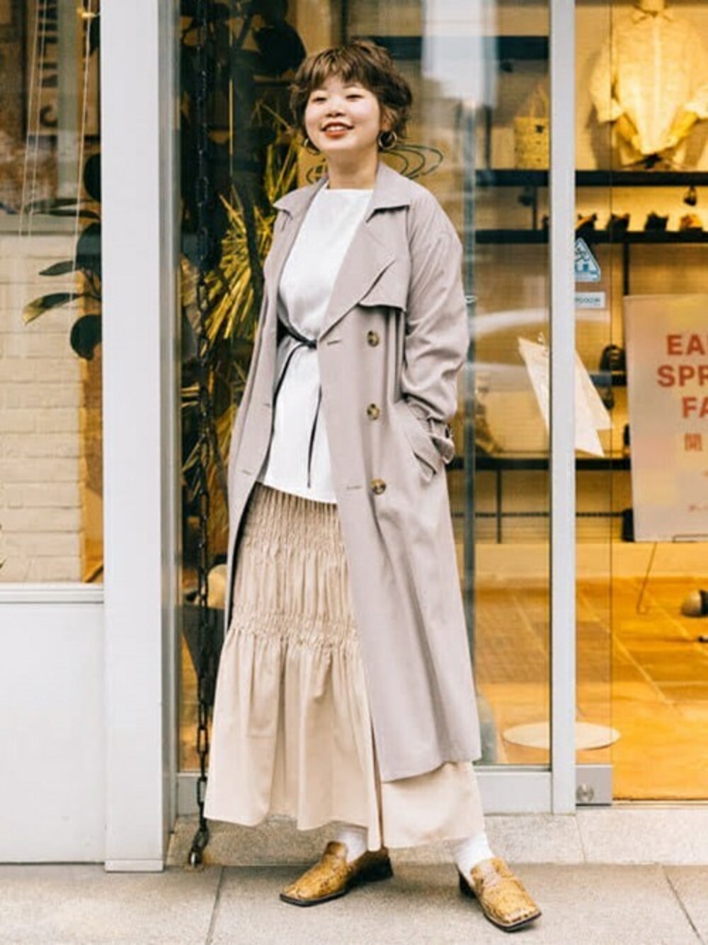 Ray BEAMS(BEAMS WOMEN)のトレンチコート「Ray BEAMS / ビッグ トレンチ コート」を使ったコーディネート