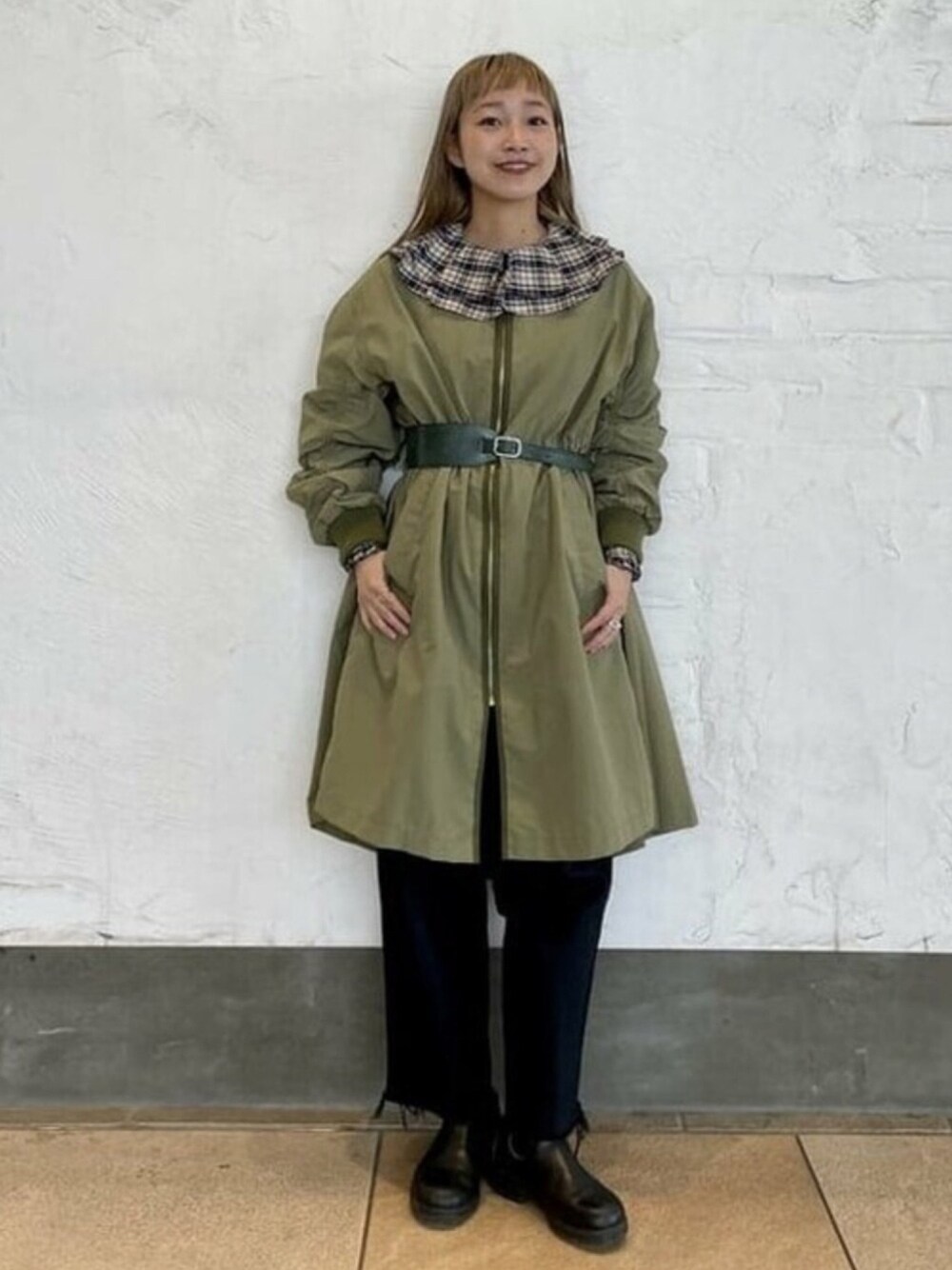 Ray BEAMS(BEAMS WOMEN)のノーカラーコート「Ray BEAMS / バックタック クルーネック ジップ コート」を使ったコーディネート