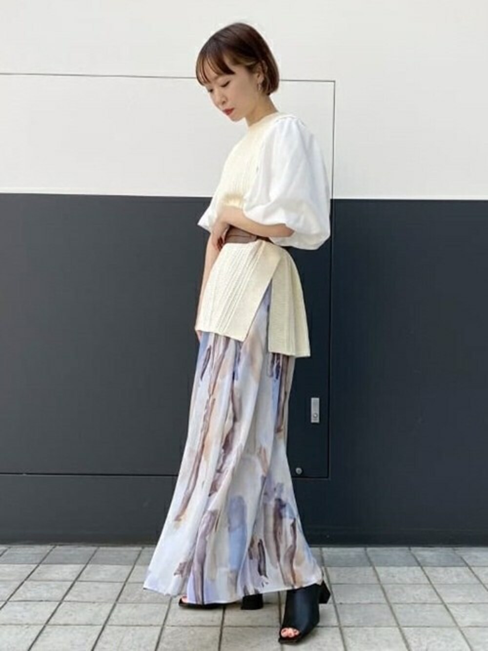 春らしいスカートを際立たせる為、他はシンプルに^_^♪ ベストはアームホールも広く、横にしっかりスリットが入っているので、レイヤードしやすい万能アイテムです。