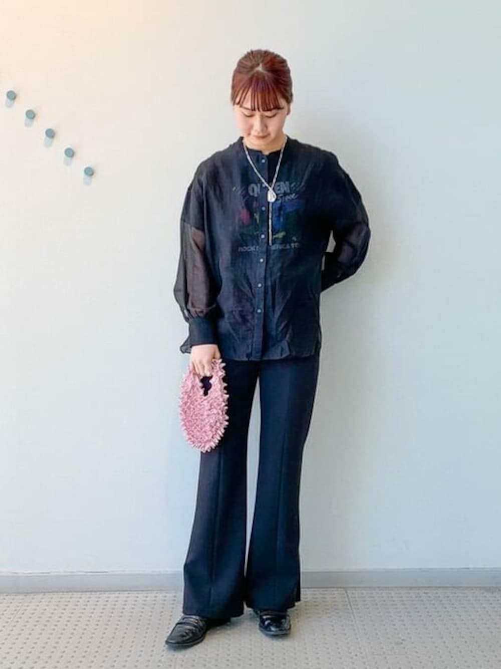BAG以外全て黒で統一したスタイリングにしてみました。ブラックコーデもシースルーのアイテムを入れることでトレンド感もあり、重くならず着ていただけます◎小物はピンクで春らしさを出してみました!