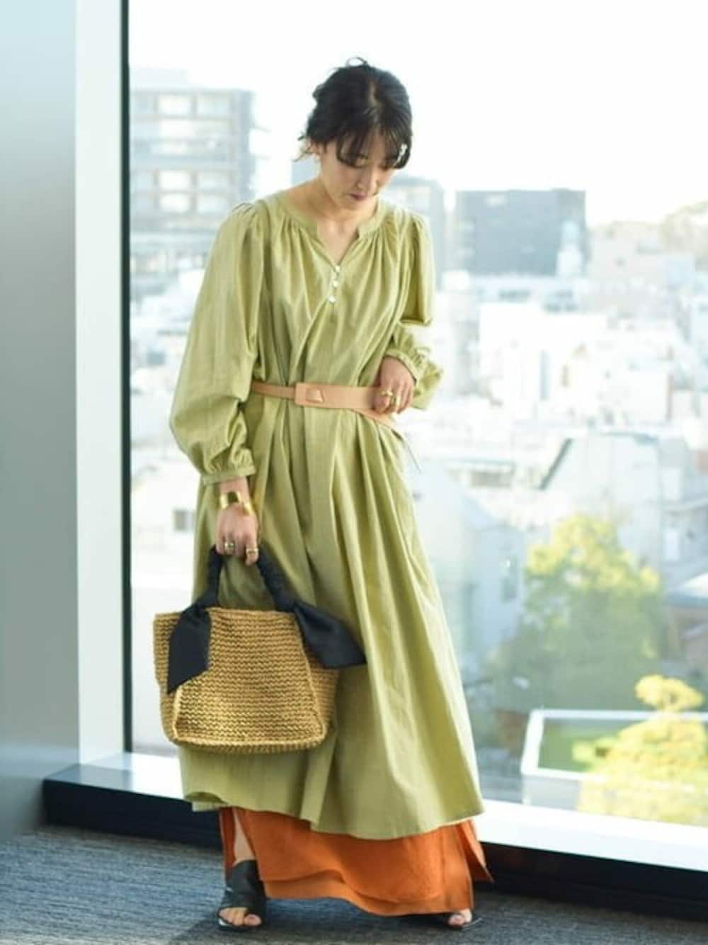 Ray BEAMS(BEAMS WOMEN)のワンピース「Ray BEAMS / ギャザー ボリューム ワンピース」を使ったコーディネート