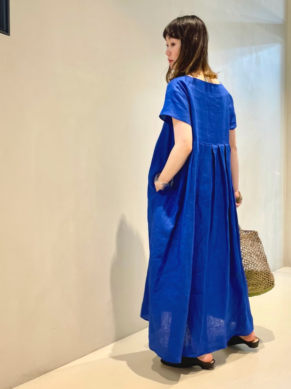【身長158cm/普段SMサイズ/着用ONE SIZE】 今年の夏に向けて、おすすめワンピースを着用しました! 麻特有のシャリ感のある生地が涼しげで、好きな雰囲気です。 バックプリーツも甘過ぎず、一枚でサラリと決まります。
