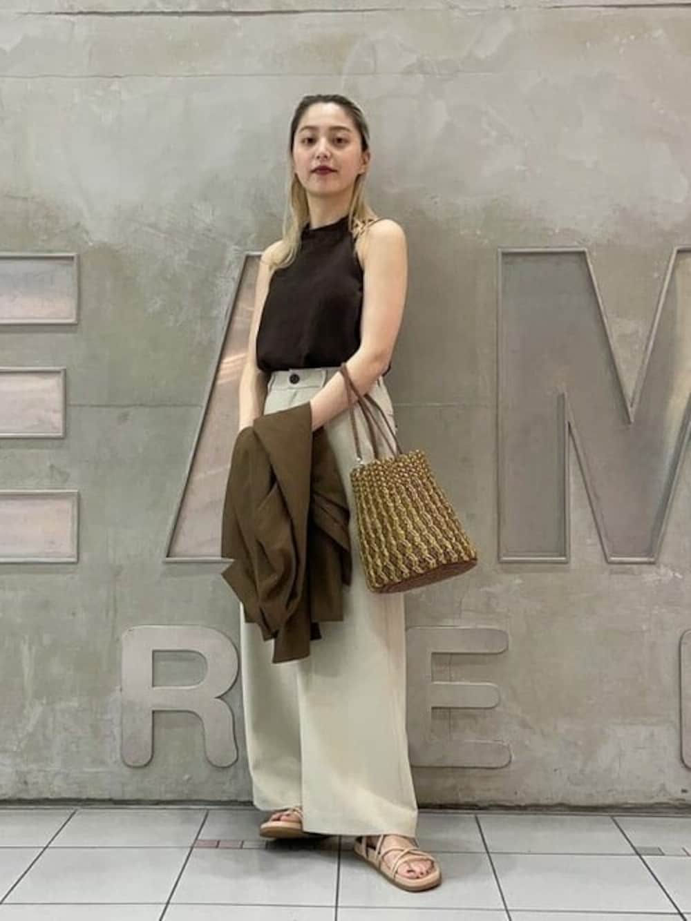 【コレが私の"理想の夏"スタイル】全体的にブラウンでバランス良く統一したスタイリング。ワイドなパンツに久々に挑戦してます!今年もキャミが大活躍!
