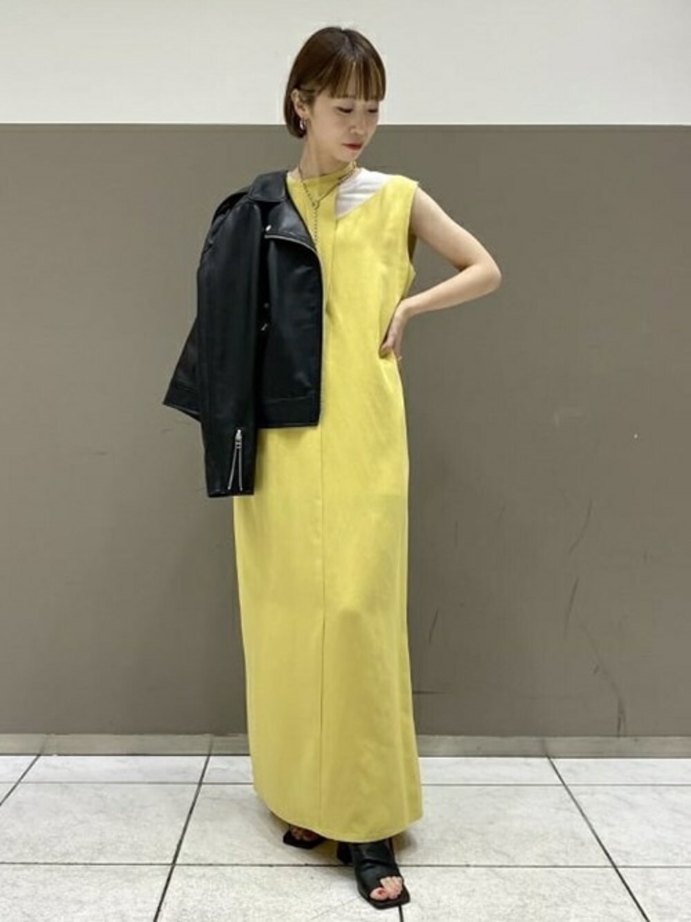 カッティングが女性らしいワンピースが入荷しました^_^ 私はノースリーブを合わせましたが、長袖のトップスを合わせても勿論可愛いです。お尻周りが意外とゆったりしているので、女性らしくなり過ぎないのも、着やすいポイントです!