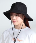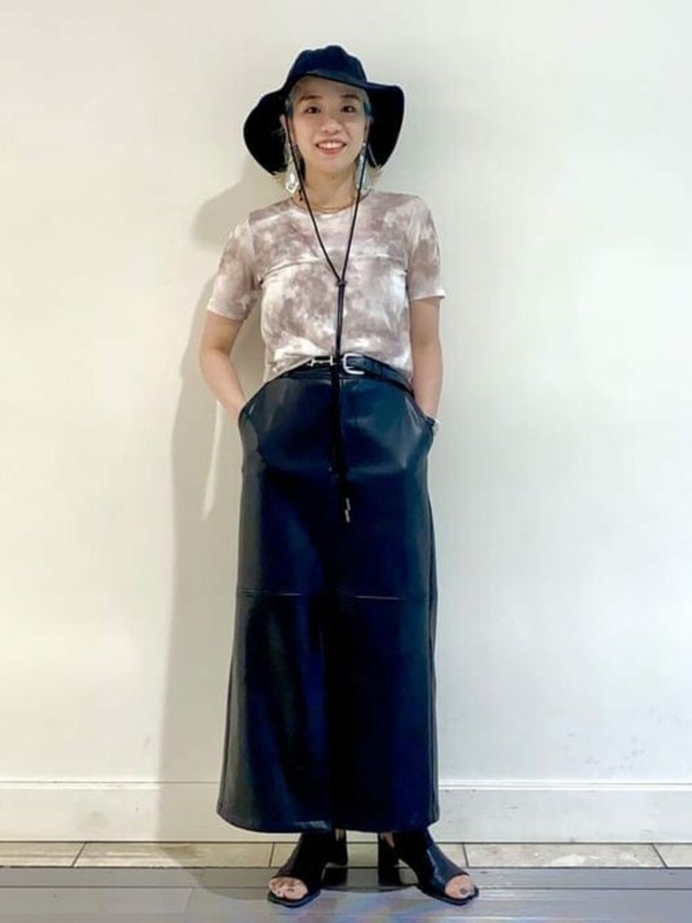 モノトーンスタイルにアクセサリー感覚で帽子をプラスしました。長めのあご紐かわネックレスみたいで可愛いです。後ろ姿は赤の差し色でアクセントをつけてます。