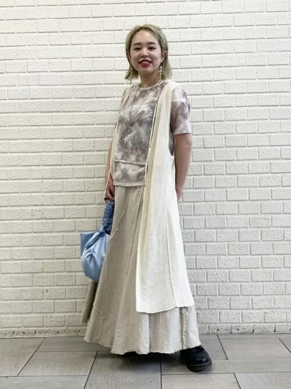 【淡いホワイト系の気分です!】本日も日差しが眩しく暑い〜日でしたネ。そんな、本日は昨年買った、<RBS>のスカートを久しぶり引っ張り出してきて、淡いホワイト系でまとめました。今日のちょっとしたポイントはアムラーヘアです。