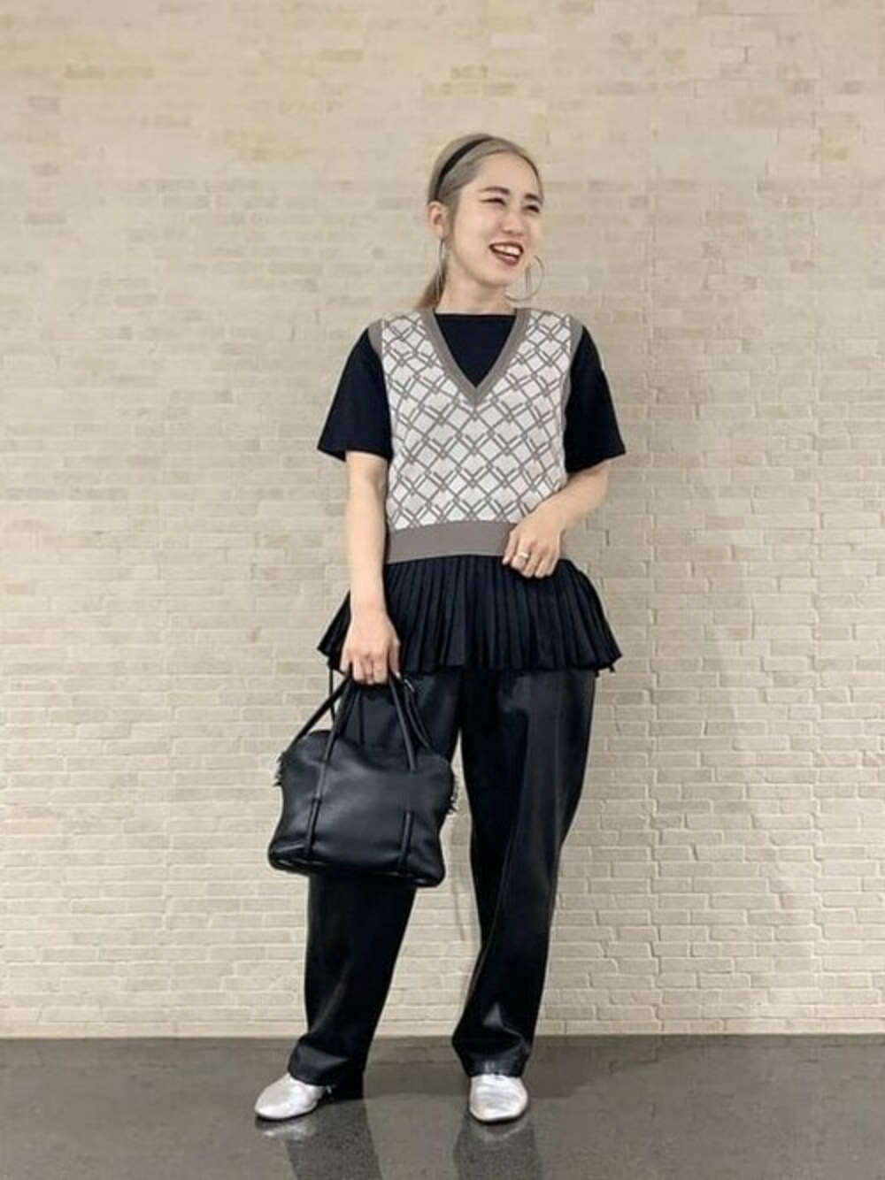 プリーツの切り替えが可愛いTシャツにコンパクトなベストを重ねました! プリーツ部分はウエストのカードで絞れるのでメリハリをつけることができます♪ 上の部分は柔らかいTシャツ生地なのでとっても着やすいですよ!! 最後はくるっと回ったときのプリーツの動きを見ていただきたくて載せちゃいました。