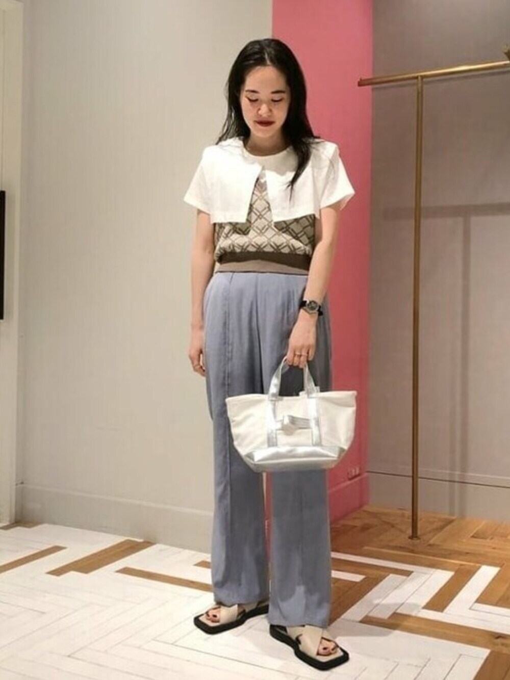 カラートーンを統一してベストで柄をプラス。 セーラーカラーがアクセントになって可愛い◎