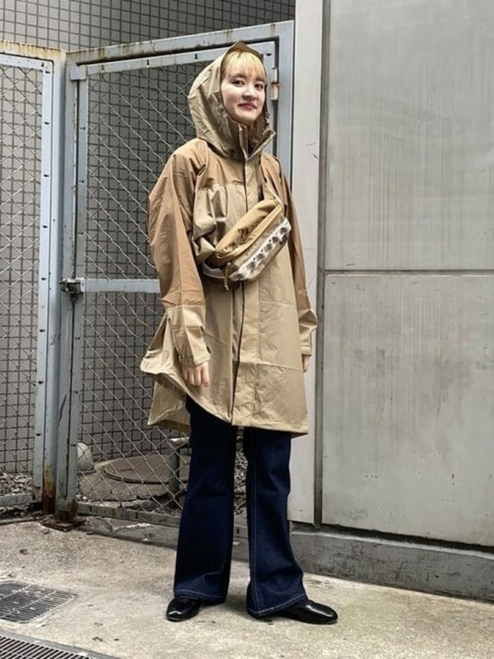 〈THE NORTH FACE〉のポンチョは防水加工になっているのでこれからの梅雨の時期にいかがでしょうか? メッシュポケットが付いているので蒸し暑い時期でも着ていただけます♪ 私はシンプルにフレアパンツと合わせました!