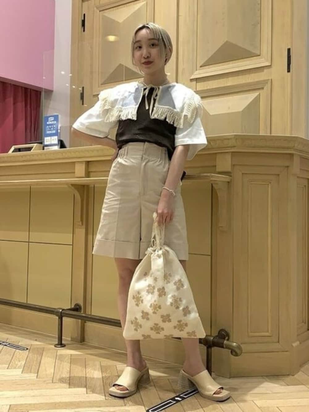 【一押しトップスのご紹介】〈Yuumi ARIA〉の取り外し可能なビッグカラーが目を惹くトップスです!襟のフリンジを活かすためにブラウンのキャミソールとレイヤードしました〜! 私的サファリルックです♡