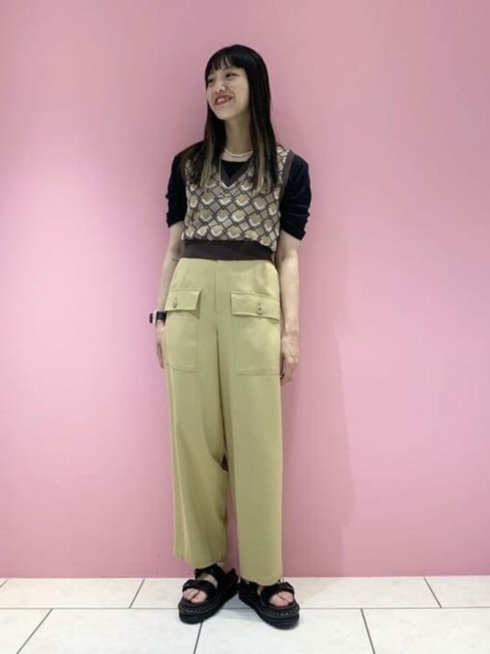 ベストは薄手なので、夏場でも活躍しそうな1着! フロントポケットが印象的なパンツは、テロっとした素材でシワもつきにくいです。