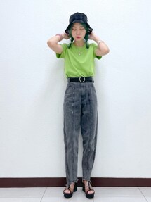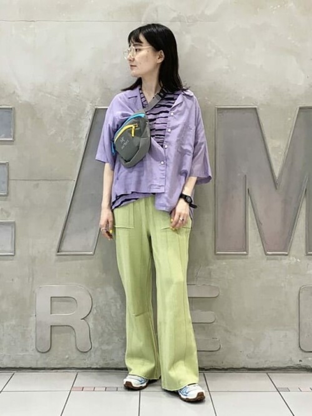 【パステルカラー同士の組み合わせには中間色を】プラスすることにより、甘くなりすぎず纏まりがでます。今回は中間色として〈ARC'TERIX〉のウェストパックを使用。また〈STAR OF HALLYWOOD〉のゼブラ柄黒が全体のコーデを引き締めてくれているような気もします!パンツも履きやすく、おうち時間に最適なアイテムです。