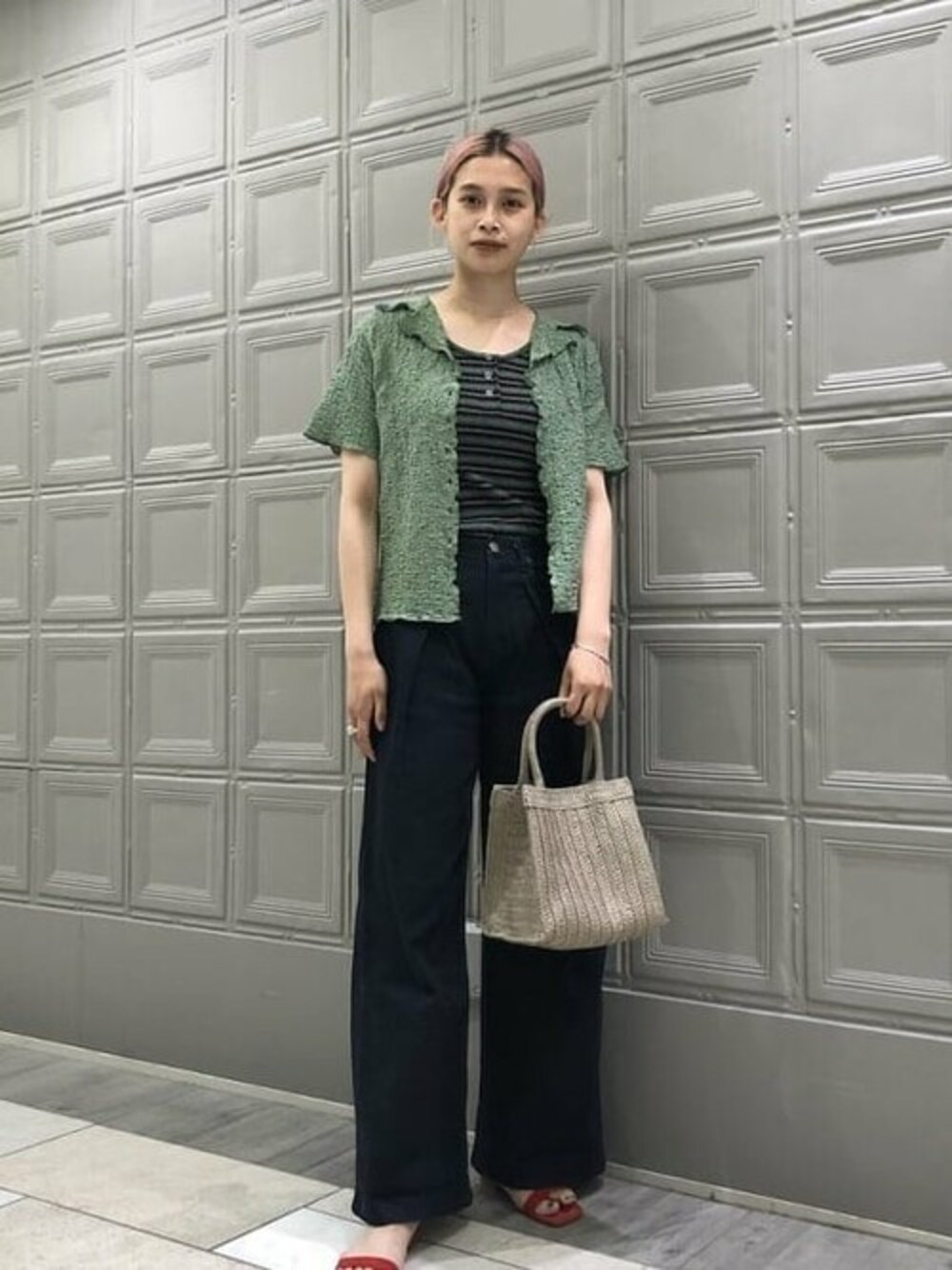 <Ray BEAMS>を使ってのスタイリングです。足元のサンダルで抜け感をプラスしました^^