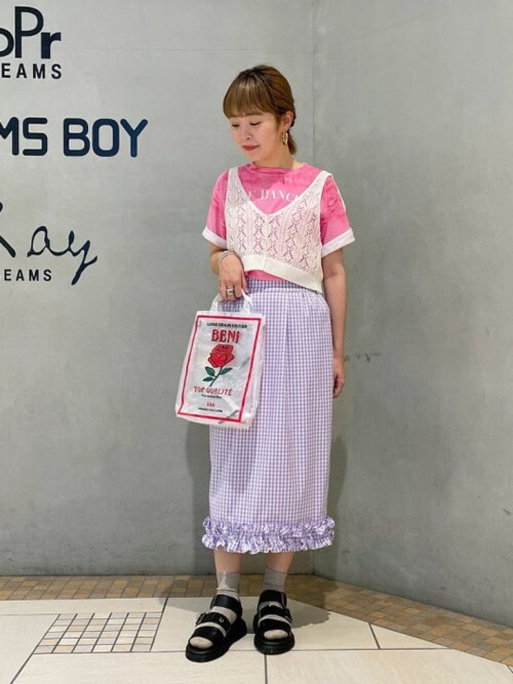 年甲斐もなくピンクの人です(笑)。 でもピンクとフリルとお花っていくつになってもときめきアイテムです◎ お洋服が甘めなので足元は<Dr.Martens>で引き締めました。