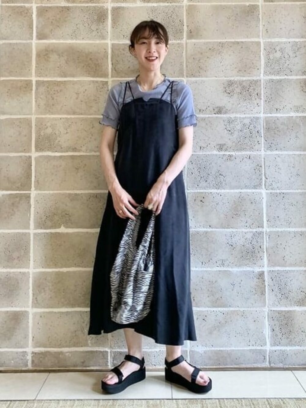 《キャミワンピース着回し》トレンドのキャミソールワンピースを主役に、カットソーとスポーツサンダルを合わせたカジュアルコーディネートにしてみました!