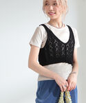 ビスチェをTシャツ合わせでカジュアルダウン。デニムにTシャツ、シンプルなコーディネートにプラスするだけでいつもと違う雰囲気に! レイヤードってそんなに実は難しくないんです◎