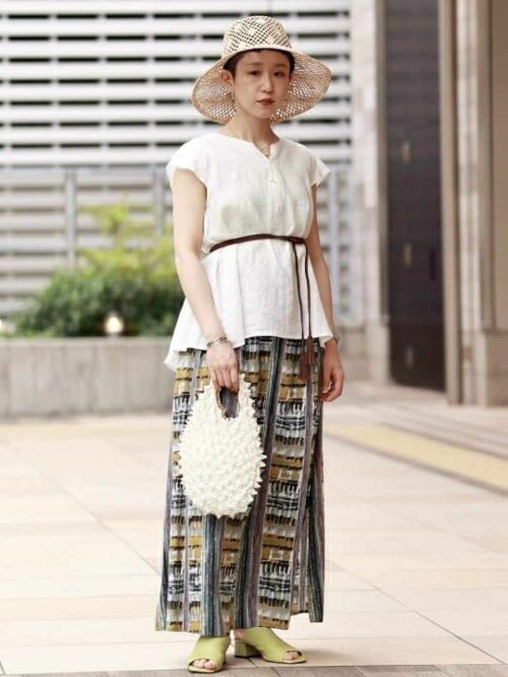 【夏は、リネン】 ナチュラルさとシックさをテーマに。 今年は程よく力を抜いた着こなしが気分です。 ちょっと透け感のあるトップスなので、インナーとサンダルの色を合わせて遊んでみました。