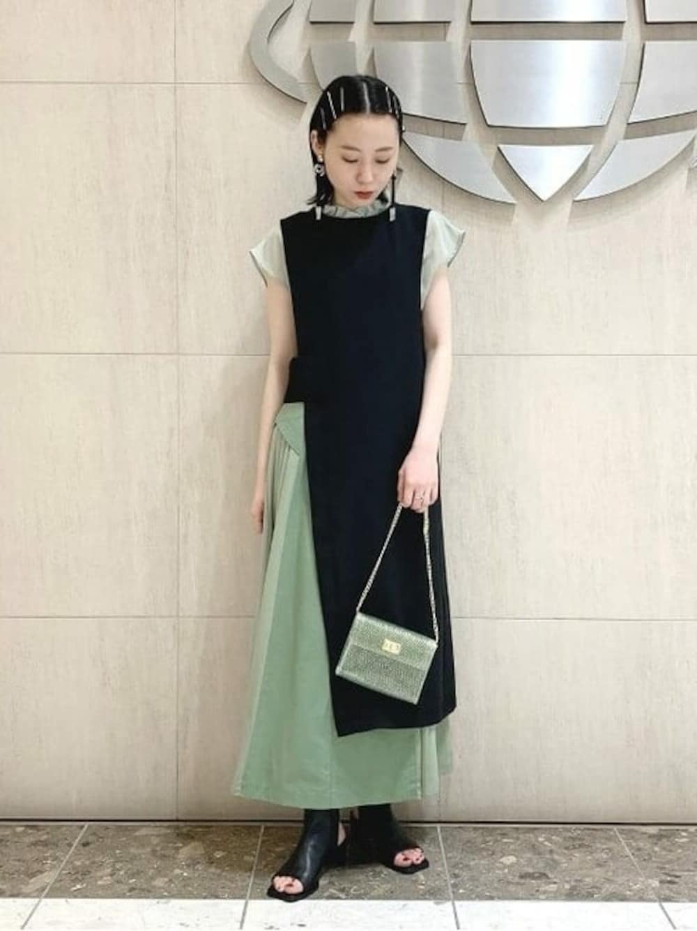 重くなりがちなブラックは、柔らかい素材やカラーのもをレイヤードすると抜け感が出ておすすめです。