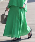【鮮やかグリーンを効かせて♪】 入荷した時から「袖のボリュームが可愛いなぁ〜!」と気になっていたTシャツに、鮮やかなグリーンのスカートを合わせました!