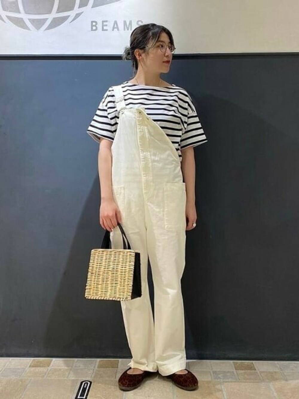 細身シルエットのオーバーオールが今の気分にぴったり。ボーダーと合わせてフレンチガールなイメージ。