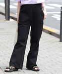 <Ray BEAMS>鮮やかなグリーンのパフスリーブワンピース。ブラックのパンツとサンダルで合わせメリハリをつけたスタイリングに♪ネックのボタンを外してキーネックのようにしました。大人でも着れる可愛さです!!