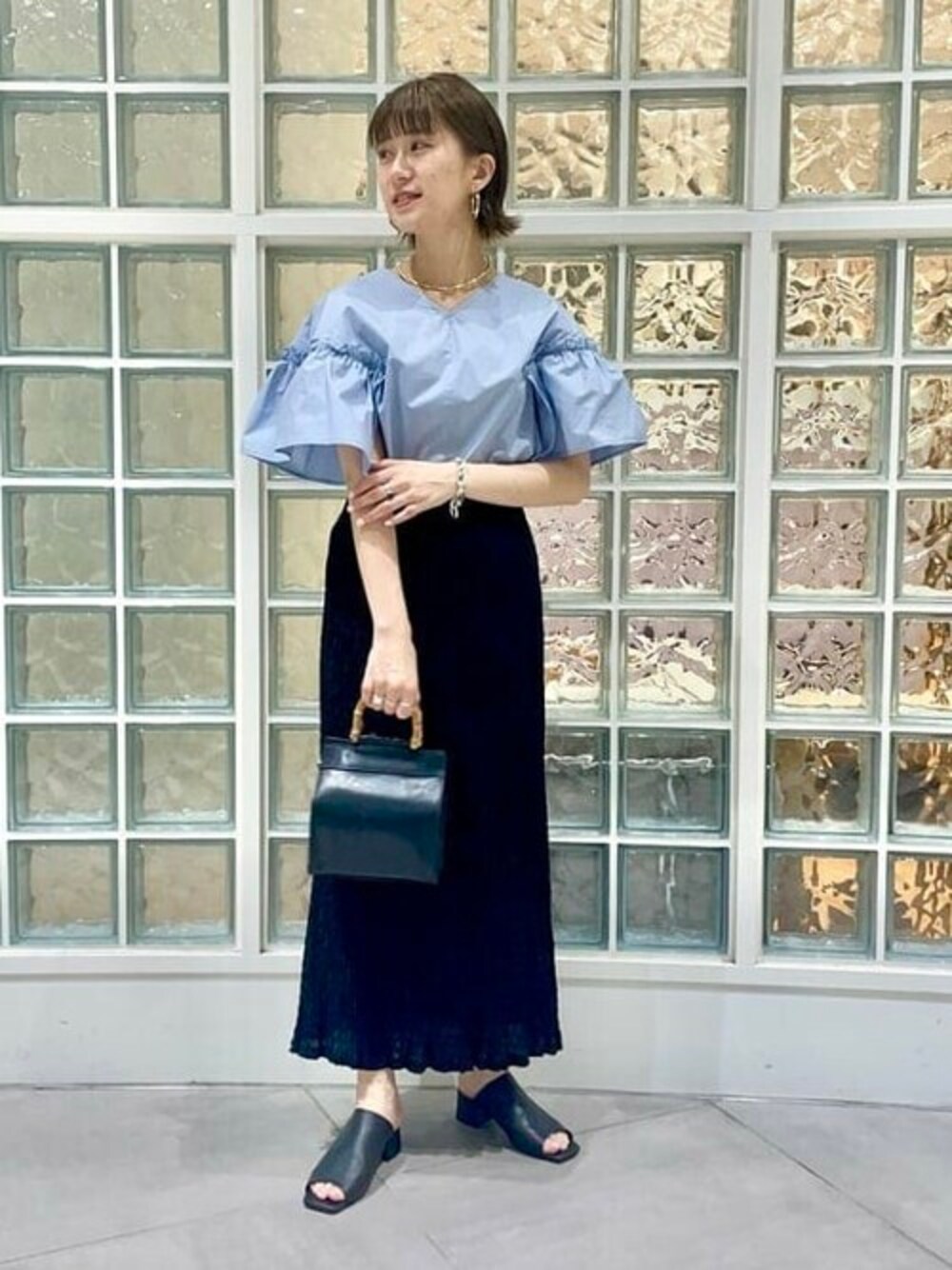 トップスのボリューム感を、タイトなスカートと合わせてバランスを意識しました☺︎ 他もブラックでカラーを統一!キレイめスタイルです♡ ブラウスは今日から半額です❥