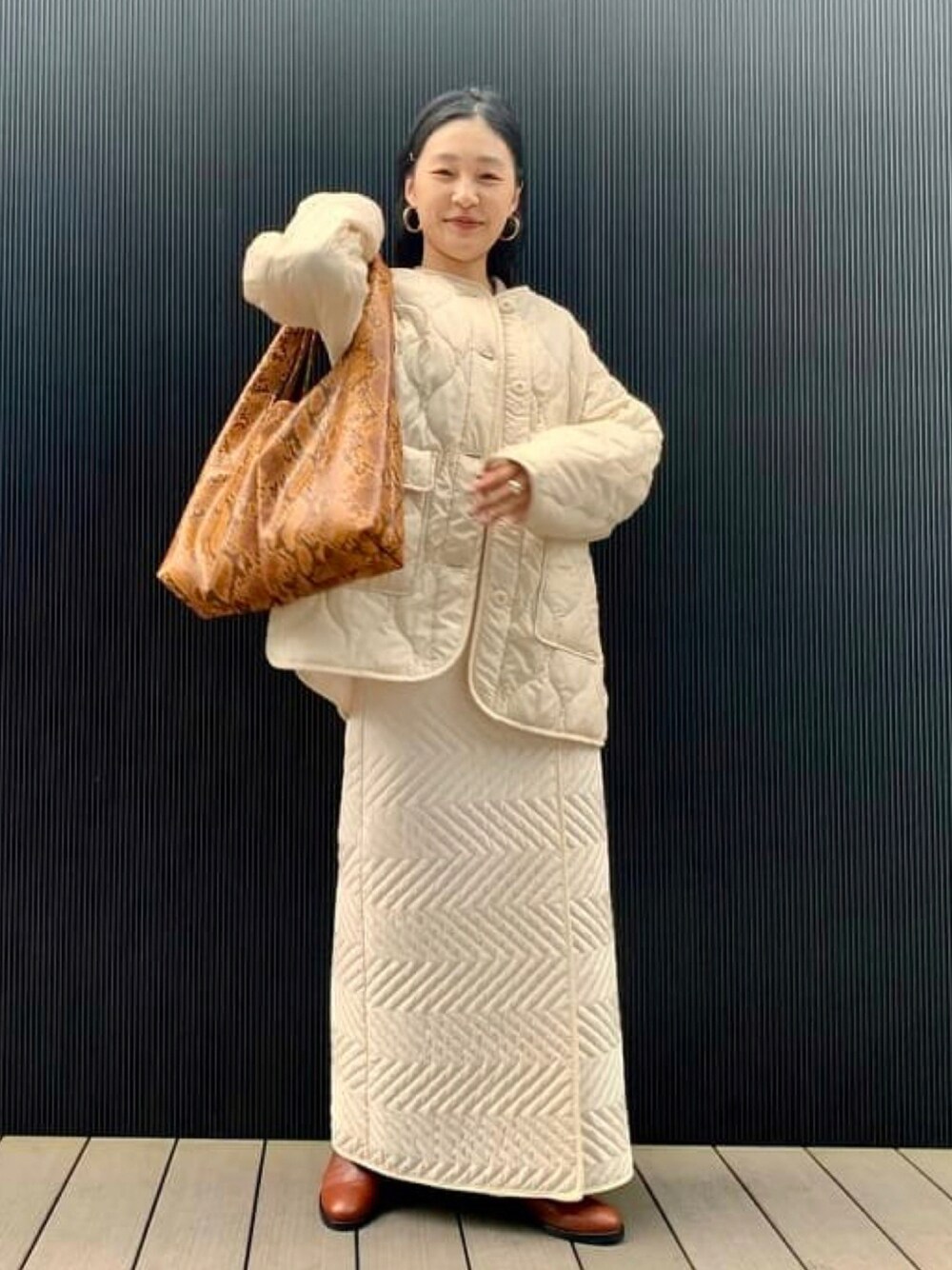 Ray BEAMS(BEAMS WOMEN)のノーカラーコート「Ray BEAMS / キルティング ノーカラー ブルゾン」を使ったコーディネート