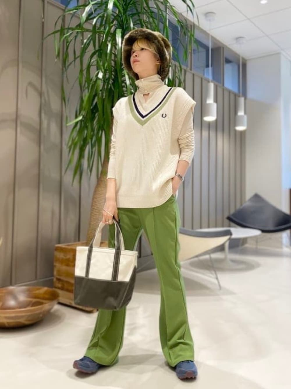 Ray BEAMS(BEAMS WOMEN)のベスト「FRED PERRY × Ray BEAMS / 別注 チルデン ニット ベスト」を使ったコーディネート