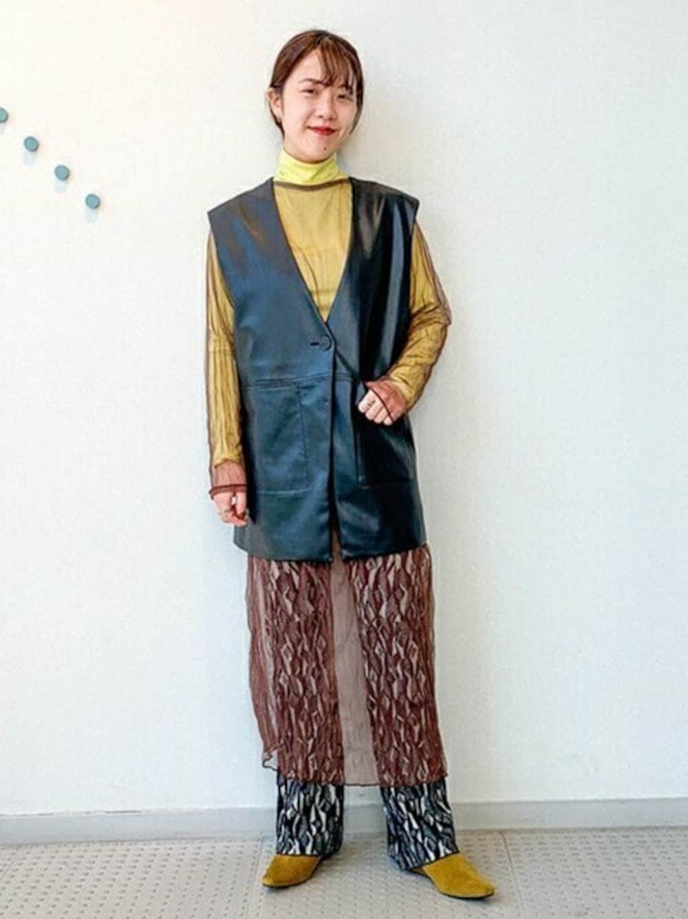 【2021FW新作でコーディネート!】 フェイクレザーのベストは、個人的に狙っていたアイテム! 前回のシリーズは即完売になったので皆様もお早めに❤︎