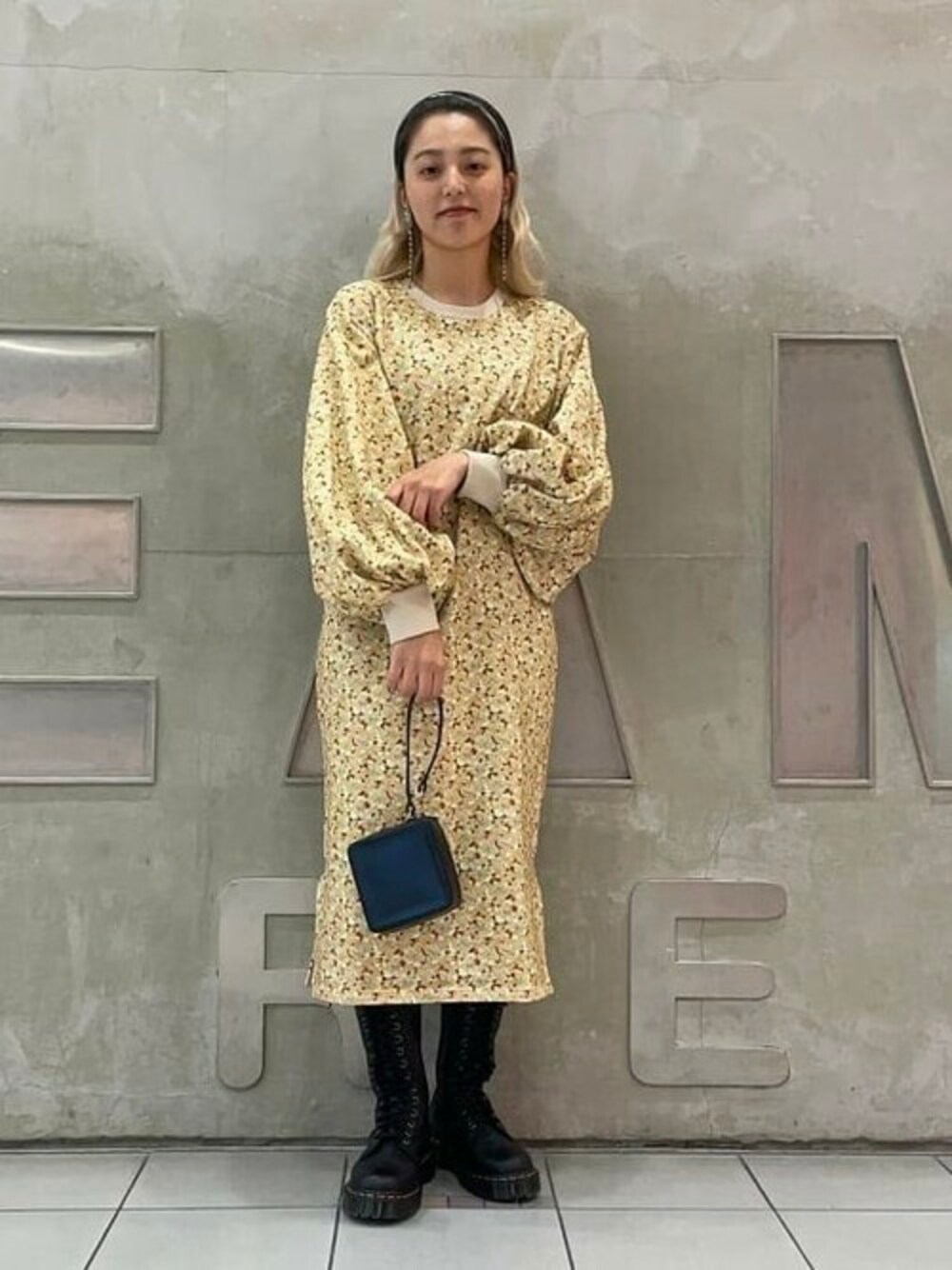 【たまにはこんなスタイリングも♡】袖のボリュームが可愛い〈FUMIE=TANAKA × Ray BEAMS〉別注ワンピ。愛用のロングブーツと合わせました。所々レザーアイテムを取り入れて締まった印象に。